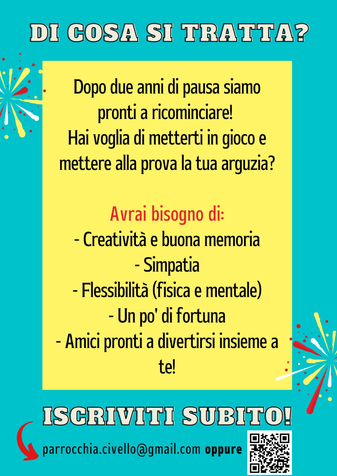 Puoi iscriverti qui https://forms.gle/9bGzF7tA8s5hRCbg6 oppure seguendo le istruzioni in calce.