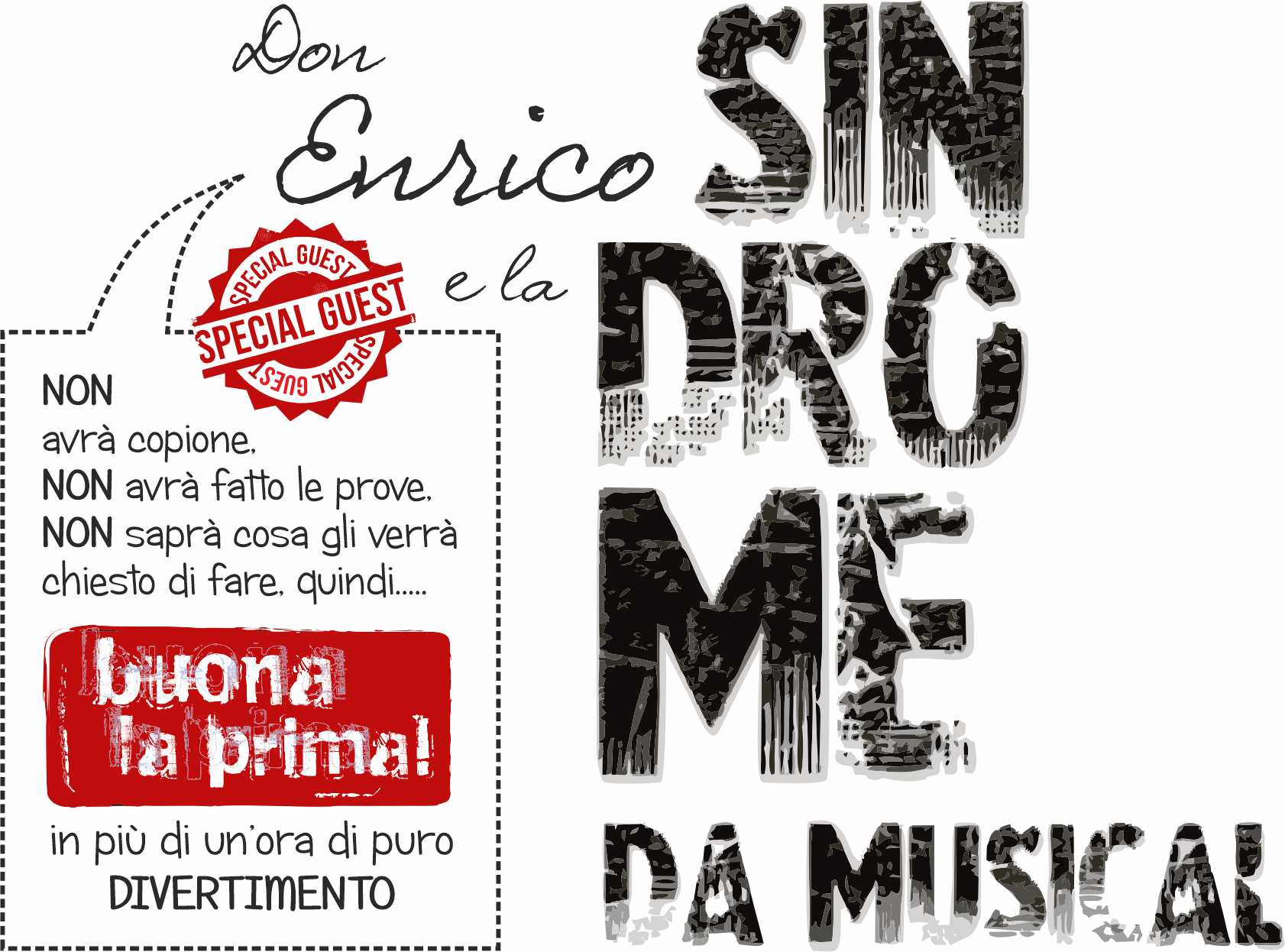 Quella di venerdì sarà un’occasione speciale, perché sarà uno spettacolo scritto appositamente per questa serata, dove un nonno, dopo un brutto colpo in testa cerca di ricordare i vari spettacoli e in tutto questo, tra le varie cose e persone, incontra proprio la Guest Star don Enrico che, all’oscuro di tutto, dovrà improvvisare le risposte a delle domande del protagonista: sarà davvero una “Buona la prima”! Sarà divertente sentire come risponderà!